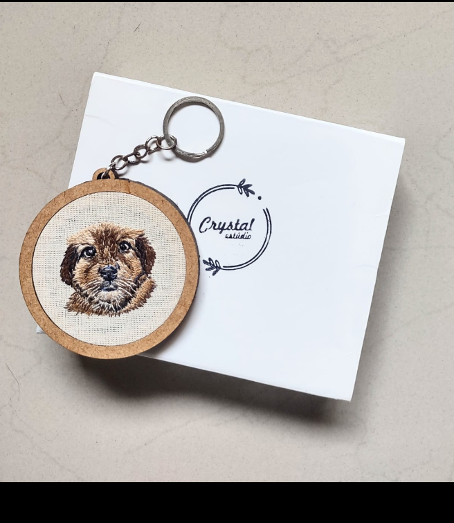 Chaveiro com a imagem do seu pet querido.Técnica pintura de agulha realista,